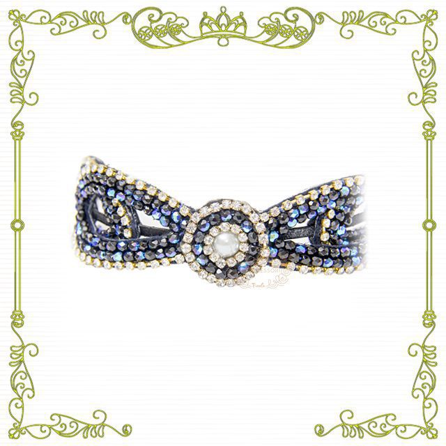 Tiara de cabelo infantil de pedraria luxo Roana: Tiara de base de arame forrado com cetim, e detalhes de strass, pérola e pedrarias frutacor.